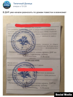 – По квартирам местным жителям разносят повестки о «всеобщей мобилизации». Уже все в ОРДЛО знают, что с неподконтрольной территории запрещен выезд мужчинам от 18-ти до 55-ти лет, в местных пабликах от этого волна возмущения. В последние годы «ДНР» и «ЛНР» всеми путями пытались заманить местных мужчин на «службу» в «армейские корпуса», обещая высокое по местным меркам довольствие. Но желающих было немного: почти в каждом подъезде есть истории о том, как мужчины на «службе» у «ДНР» гибли в первые дни из-за халатного отношения к ним российских командиров, которые де-факто командуют «армейскими корпусами». Сейчас люди в открытую говорят о том, что под шумок Россия пытается любыми путями «залатать дыры» в «армейских корпусах», в подразделениях которых хронический некомплект. Также людей стали бомбардировать смс-сообщениями с призывами «стать на защиту своего дома и отечества».
