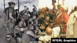Є кілька фотопостановок на тему картини Рєпіна «Запорожці пишуть листа…». Перші спроби були ще під час АТО на Донбасі, яка почалась в 2014 році.