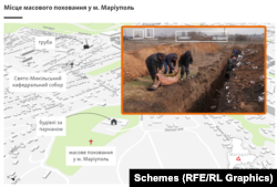 Раніше «Схеми» розповіли про місця масових поховань маріупольців біля селища Мангуш, на кладовищі у селі Виноградне та на кладовищі селища Старий Крим. «Схеми» повідомляли, що поховання у Виноградному та Старому Криму продовжують збільшуватись у розмірах.