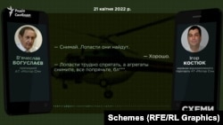 «Це Міністерство оборони, це Головне управління розвідки. Зараз Гєна (Геннадій Касай – ред.) не бере слухавку, в них зараз зустріч з керівником цього відділу, цього підрозділу. Гєна в курсі справи – має зараз з ними… з ним там це питання обговорювати. Наталія Борисівна (Ульяненко – ред.) теж зі свого боку підключилась», – говорив телефоном Богуслаєву 21 квітня 2022-го року Павло Касай.