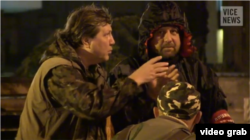Зокрема, чоловік у чорній куртці із пов’язкою дружинника на цьому скріншоті, за словами євромайданівця, був одним із тих, хто затримував Щекуна, погрожував йому і відводив під руку в міліцію.