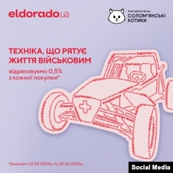 «Допомога Силам оборони – те найменше, що ми маємо робити для наближення перемоги. Долучитися до важливого можна і у такій звичній справі, як купівля смартфона чи побутової техніки: частину коштів за покупку ми направимо на спеціально виготовлені броньовані багі», – заявляла тоді виконавча директорка мережі «Ельдорадо» Віра Вітинська.