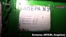 На камері номер п’ять зазначені прізвища людей, які перебували тут за російської влади.
